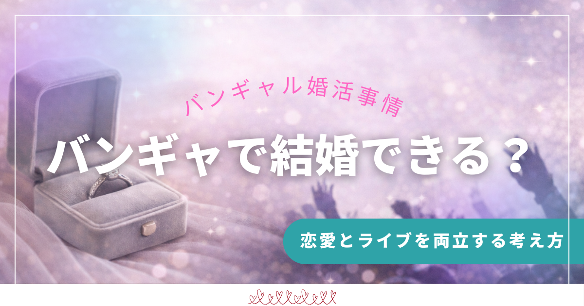 バンギャとして生きてきた立場から、本命を手放さずに恋愛や結婚をどう考えてきたのか、具体的な考え方や向き合い方を整理して伝えていきます。